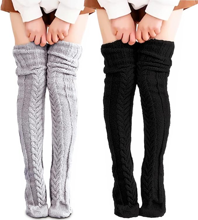Women's Cable Knit Thigh High Socks Over Knee High Long Leg Stockings Extra Long Winter Long Boot Leg Warmers