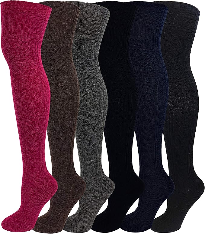 6 pairs Women Wool Cable Knit Knee High/Thigh High/Crew Winter Boot Socks 9-11 (6 Pairs Over Knee High, 9-11)