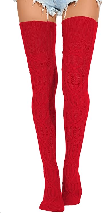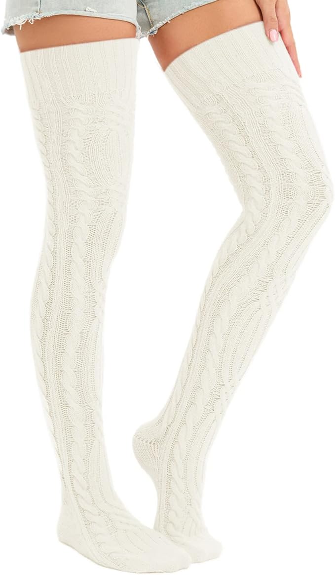 Cable Knitted Thigh High Socks for Women Winter Extra Long Over Knee High Leg Warmer Stockings