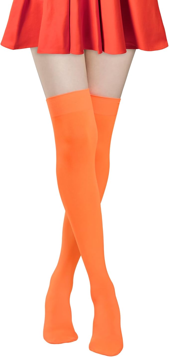 Orange Women's Thigh High Opaque Stockings 120D Nylon Knee High Socks Velma Leg Warmers for Halloween