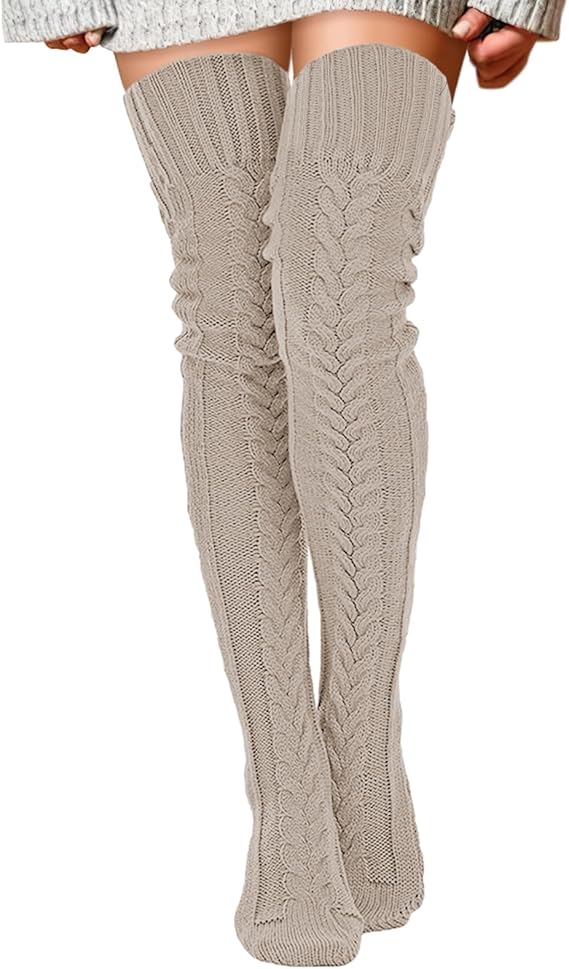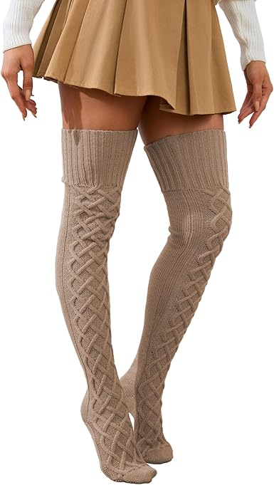 Women's Cable Knitted Thigh High Socks Leg Warmers Extra Long Warm Over Knee High Winter Stockings