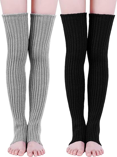 2 Pairs Women Long Stirrup Leg Warmers Winter Knitted Over Knee Thigh High Long Socks 80s